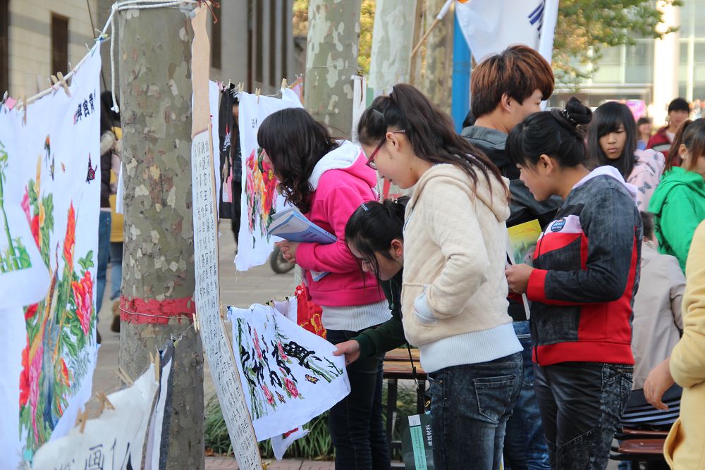 11月8日,我院成才大道两侧挂满书画和工艺作品,为秋日的校园抹上一笔浓厚的艺术氛围。