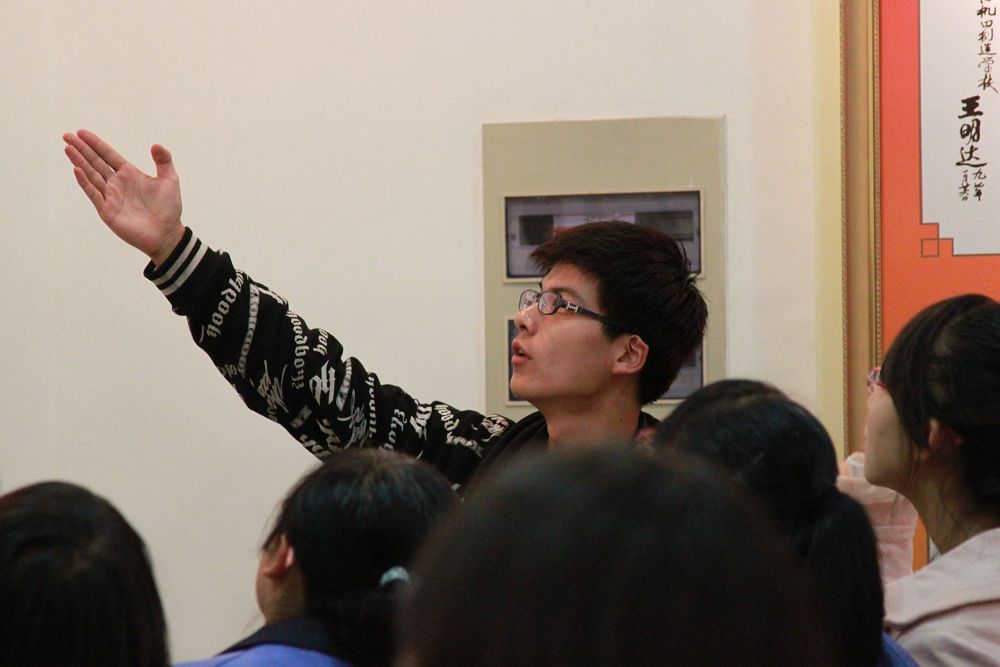 在校使馆内,讲解员为同学们认真解说、解答疑问。同学们看得津津有味,听得如痴如醉。大家都被馆内精美的工艺品和学校的历史所震撼。不时发出阵阵惊叹声,许多同学都在此拍照留念,校史馆已成为一个宣传展示学校文化和历史的窗口。