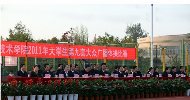 11月9日下午,我院田径运动场人潮涌动,激情飞扬,2011年大学生大众广播体操比赛拉开帷幕。党委副书记王天喆宣布比赛开始并致开幕辞,纪委书记赵嘉骏亲临现场观看比赛,全校10个学院的1050余名学生参加此次比赛。我院代表队以全场最高分91.40分荣获比赛一等奖,并获得优秀组织奖和优秀领操员奖。
