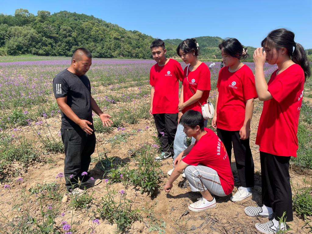 【马鞭草种植园体验】随后,实践队员来到南泥湾经济作物示范园的马鞭草种植基地,亲身体验使用镢头的田间劳作,据技术人员介绍,南泥湾因地制宜将红色资源和生态环境优势相结合,打造经济作物示范园,主栽醉蝶花、马鞭草、美人蕉、太阳花、孔雀草等品种。盛夏时节,南泥湾遍地是花海,处处是风景,成为市民休闲避暑的好去处。