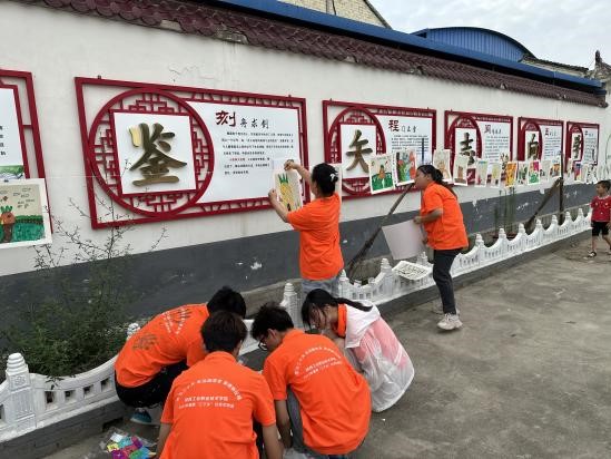 在为期8天的暑期“三下乡”社会实践活动中,队员们发挥自身专业优势,紧紧围绕弘扬乡村振兴、美丽乡村等主题,开展了书法、绘画、写生、墙绘等一系列丰富多彩的实践课程,推进“思政+美育”协同育人。通过本次活动,团队成员在利用所学专业知识给小学生们上好绘画、书法课程的同时,与小朋友们一起在实践课堂中受教育、长才干、作贡献,为实现中华民族伟大复兴贡献青春力量。