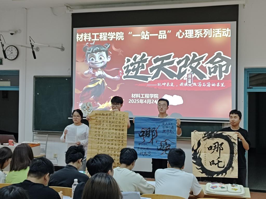 为深化心理健康教育内涵建设,材料工程学院成功举办“一站一品”特色心理育人活动"假如你是他-哪吒"。活动通过融合AI绘画、书法等创新形式,助力百余名学生在沉浸式体验中提升心理韧性,获师生广泛好评。