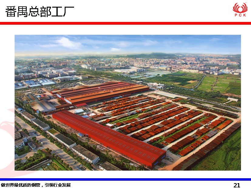 番禺珠江钢管有限公司成立于1993年,占地四十多万平方米,现有员工2000多人,拥有“中国名牌”、“中国驰名商标”、“中国冶金产品实物质量金杯奖”、“国家高新技术企业”和“国家认定企业技术中心”五项国家级荣誉。公司主营口径为4-72英寸(114mm-1829mm)直缝焊管的生产和销售,拥有从美国等发达国家引进的ERW、JCOE、UOE等五条直缝焊管生产线,配套拥有系列防腐和管件生产线,能提供各类防腐和管件产品,是中国最大的直缝焊管生产和出口基地。公司先后通过了美国石油协会(API)认证、英国标准协会(BSI)认证、ISO9001-2000质量管理体系认证、ISO14001环境管理体系和OHSAS18001职业健康安全管理体系认证,产品广泛应用于石油、天然气、石化、城市燃气、建筑工程等领域,远销中东、欧美、非洲、东南亚等50多个国家和地区。2011年,公司被评为广东省劳动关系全面和诣AAA级企业。