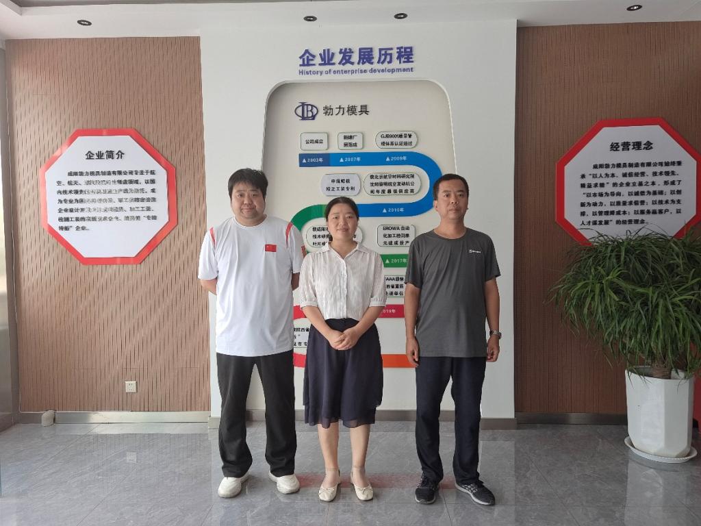 8月26日,模具专业教师董海东、贾娟娟赴咸阳装备制造产业园开展合作交流。下午2点,两位老师走访了咸阳勃力模具制造有限公司,人力资源部王力经理对董海东一行到来表示热烈欢迎,并介绍了公司的发展历程、业务情况以及智能产线数字孪生产品等方面情况。