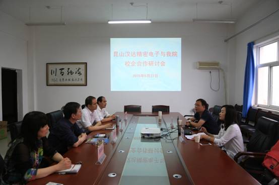 5月28日上午,汉达精密电子有限公司一行来我院洽谈校企合作开设“订单班”事宜。材料工程学院院长张普礼、数控工程学院院长卢文澈、机械工程学院党总支书记王金辉及材料学院相关领导参加了会谈。