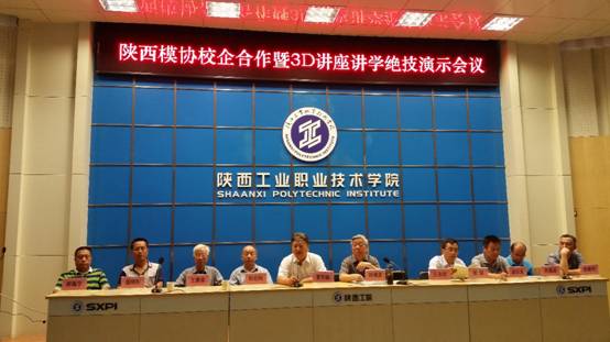 2016年6月18日,由我院承办的陕西模协校企合作暨3D讲座讲学绝技演示会议在我院学术会堂召开。陕西省模具工业协会常务副理事长兼秘书长陈博源、副秘书长赵兴、省内大中型模具骨干企业的领导、专家以及部分院校领导出席了会议。我院材料学院院长罗怀晓、材料学院党支部副书记郭旭华、模具教研室全体教师、模具专业学生代表约200余人参加了会议。