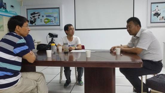图7 模具专业教师与常州信息职院模具教研室主任叶峰交流