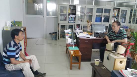 图3 淮遵科老师与广东轻工职院模具教研室主任康俊远老师交流