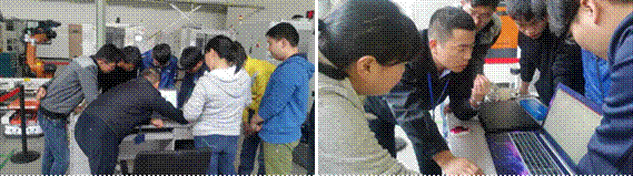 期间,我院师生参观了公司的机床车间、特色加工样品,对在机测量技术、DNC系统等特色技术进行了解,并在现场观摩、参与了特色样品的加工过程。在交流的愉快过程中,双方表达了合作的意愿,希望今后加强对制造领域革新方向的探讨交流、使模具专业教学与企业发展相互促进,真正实现我国制造业的可持续发展。