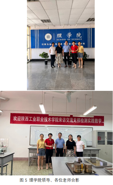 通过前期与西安工程大学王秋萍老师联系,王老师非常热情的欢迎我们去他们学校观摩学习。今天去了更是感受到他们的热情,西安工程大学2006年开始承办无损检测专业方向,在他们理学院领导的支持和各位老师的努力下,他们的无损检测专业方向办的有声有色,在省内乃至全国的知名度越来越高,他们的实验室有超声波检测实验室、磁粉检测实验室、渗透检测实验室、射线检测实验室、涡流检测实验室等,理学院一层楼都是无损检测各实验室。各位老师对我们表现了极大的热情欢迎,超声波实训室拉的横幅“欢迎陕西工业职业技术学院来访交流无损检测实践教学“,他们的教学陈副院长专门过来跟我们交流合影,大赛学生之间在交流实际操作问题,他们的实验员老师热情指导,老师们在沟通专业发展、专业课程设置、教学经验及教学方法等。中午王秋萍老师招待我们在他们食堂吃饭,感受本科食堂伙食氛围。