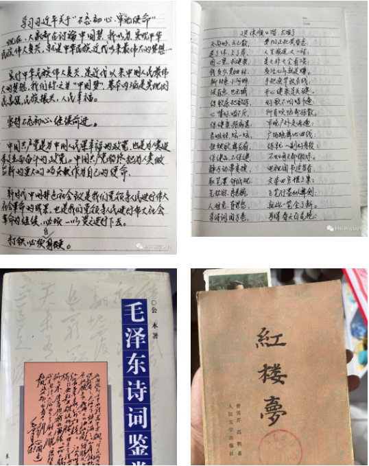 闫峰爷爷平日素爱读书,喜欢作诗。虽然已经73岁了,但他学习党的理论和知识的热度不减,一得空就研读各种党史书籍,每天都坚持读书做笔记。