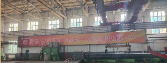 实地参观。参观完了办公大楼,实践团的成员们跟随薛康利师傅的脚步,来到了车间。进入车间之前,一位师傅给团队成员们一人一顶安全帽,佩戴完毕后大家整齐走进车间。进入车间首先看到了“中国焊管从这里走来,从这里燎原……”