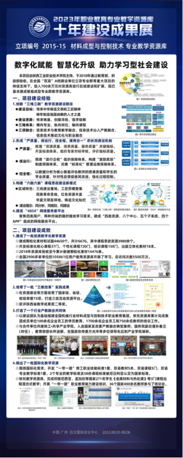 本次会议提交了国家职业教育材料成型及控制技术专业教学资源库建设案例,并在会场展出。