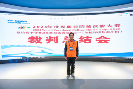 2024年世界职业院校技能大赛总决赛争夺赛高职组装备制造赛道——智能焊接技术小组(赛项)于2024年10月26日至29日在武汉船舶职业技术学院举行,本次大赛共有来自全国各地的56支代表队、近220名选手参赛,我院教师杨新华教授受邀担任裁判工作。